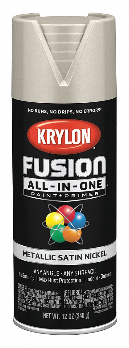 Krylon satin nickel spray paint. Read reviews for ColorMaster Paint Primer Brushed. 25 out of 5 stars. The easy push big button tip provides the ability to spray at any angle for fast coverage to get your project done.