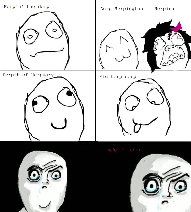 Herp derp originated as do so many important philosophical concepts on South Park. Un altro rage memes pastoso. Part of rage comics or crudely drawn web comics depicting various emotions the herp derp face and expression was born as a reaction to something considered stupid or contemptibleThe herp in herp derp is rhyming reduplication.